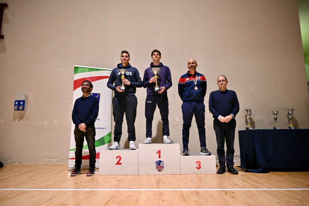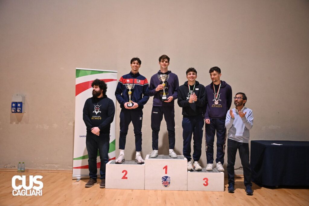 Nel fioretto maschile tripletta per il Cus Cagliari con la vittoria di Luca Ribaudo (al sesto titolo regionale assoluto consecutivo), il secondo posto di Diego Ruggeri, il terzo di Davide Cucca pari merito con Giuseppe Pala dell’Accademia d’Armi Athos. Tutti e quattro gli atleti si qualificano per i Campionati Nazionali Gold accompagnati dal quinto classificato Mattia Sanna del Circolo Schermistico Sassarese.
